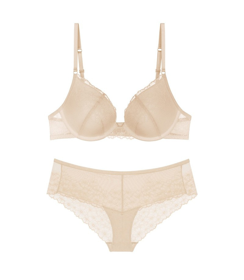 i optycznie powiększa biust. Niesamowicie komfortowy, doskonale sprawdzi się przy głębokim dekolcie. Majtki typu biodrówki z subtelną koronką zachwycają delikatnością i kobiecością.