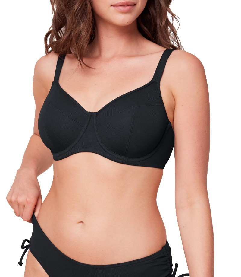 • Miękkie miseczki o zabudowanym, trójdzielnym kroju doskonale podtrzymują biust.