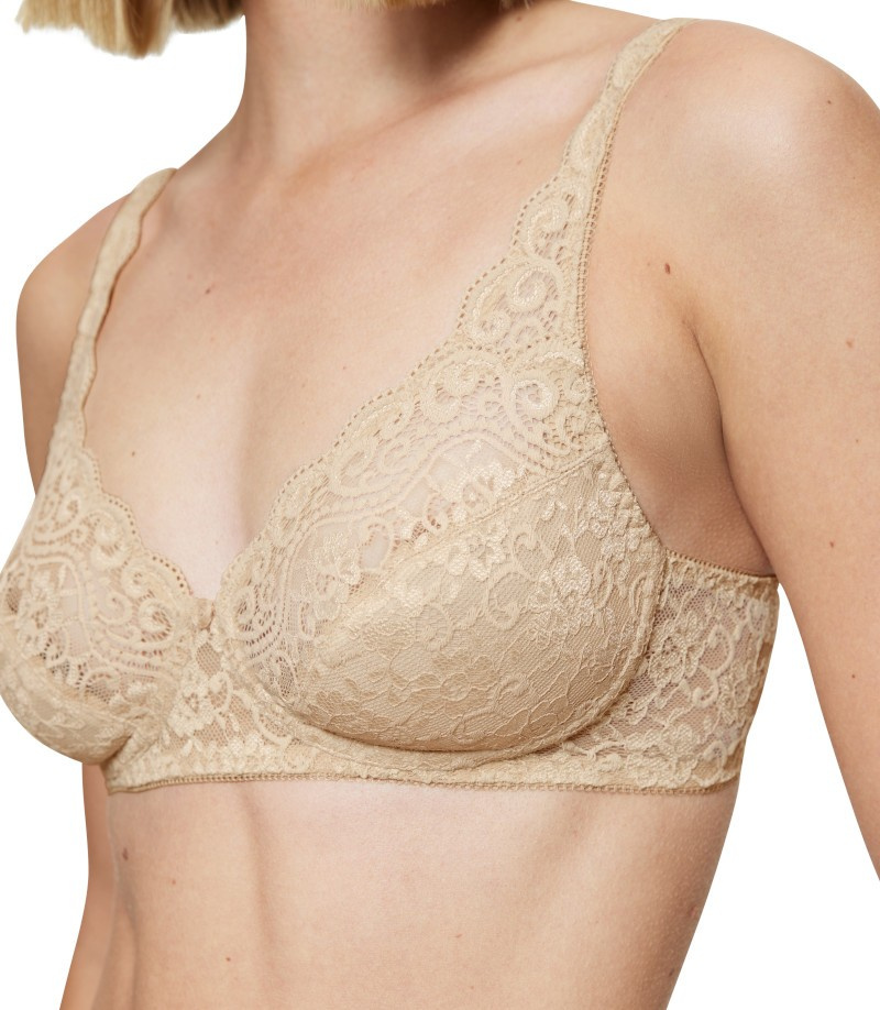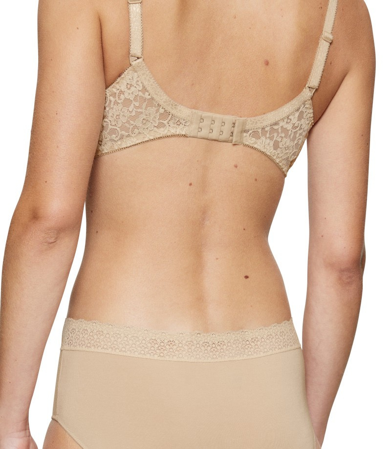 - Dobrze dobrany przez profesjonalistę biustonosz jest właściwie dopasowany, ale nie za ciasny. Zakup za ciasnych rozmiarów powoduje deformację i naciągnięcie materiału, a w rezultacie chęć zakupu biustonosza w jeszcze mniejszym rozmiarze (bo poprzedni się rozciągnął). Elastyczność biustonosza uwzględniona jest przez Triumph już w procesie produkcji.