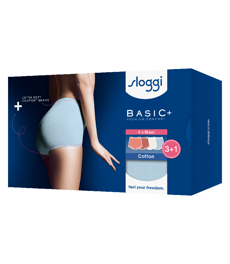 - sloggi Basic+ Maxi 4P to majtki wykonane z najwyższej jakości, miękkiej i przyjemnej w dotyku bawełny. Dostępne w praktycznym czteropaku.