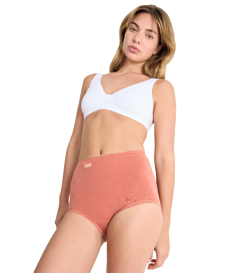 Sloggi Basic+ Maxi 4P to majtki wykonane z najwyższej jakości, miękkiej i przyjemnej w dotyku bawełny. Idealne dla osób o bardzo wrażliwej skórze, które mają problem ze znalezieniem bielizny niepodrażniającej i nieuwierającej ciała.