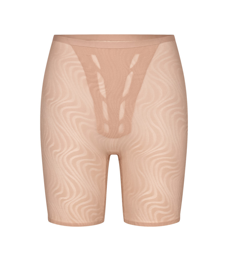 - Wysokie zbudowane majtki z nogawkami, które optycznie wyszczuplają i wyraźnie zmniejszają obwód brzucha, bioder i ud. Dodatkowe podszycie zapewnia efekt płaskiego brzucha.