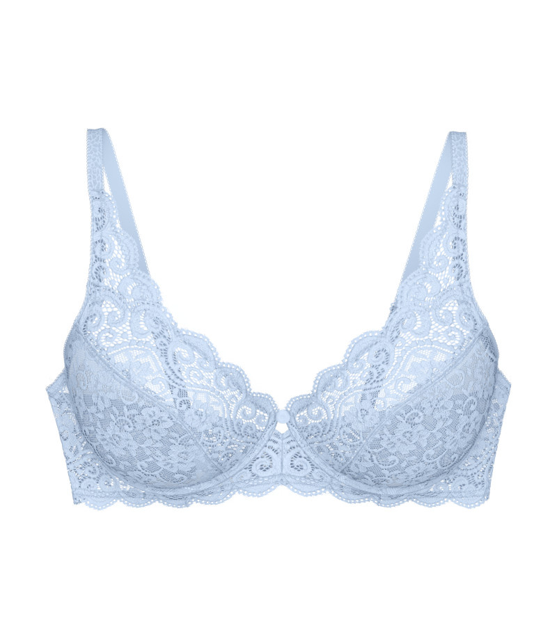 - Koronkowo zdobione miseczki zapewniają perfekcyjne dopasowanie i świetnie podtrzymują biust.