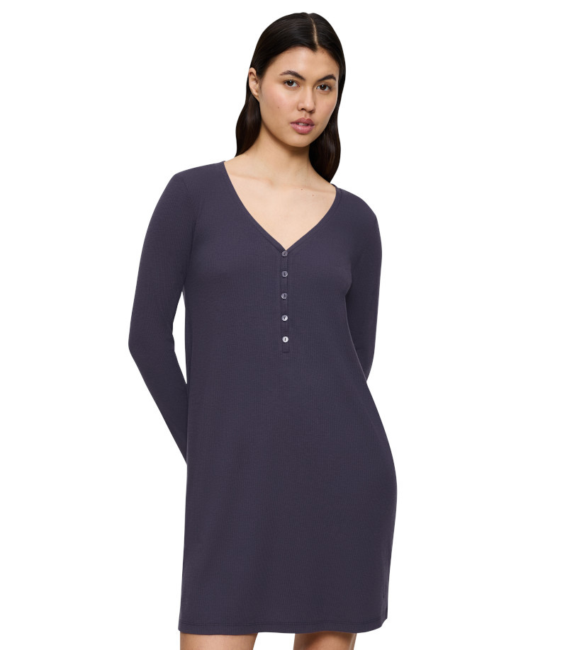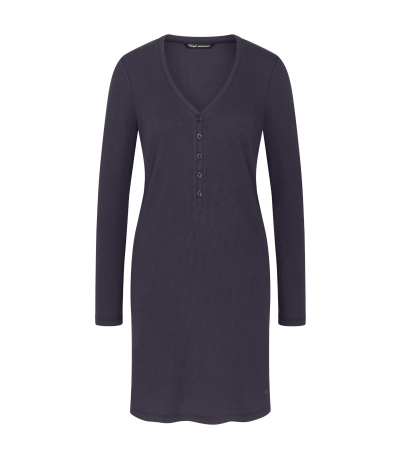 Jedna koszulka, różne zastosowania. Możesz nosić ją według uznania jako sukienkę, lub ulubioną koszulkę nocną. Wygodny krój i przyjemna w dotyku prążkowana wiskoza zadbają o Twój komfort. Wysokiej jakości naturalna tkanina znajomicie odprowadza wilgoć, dzięki czemu zapewni Ci komfort przez cały rok nawet podczas gorących letnich nocy.