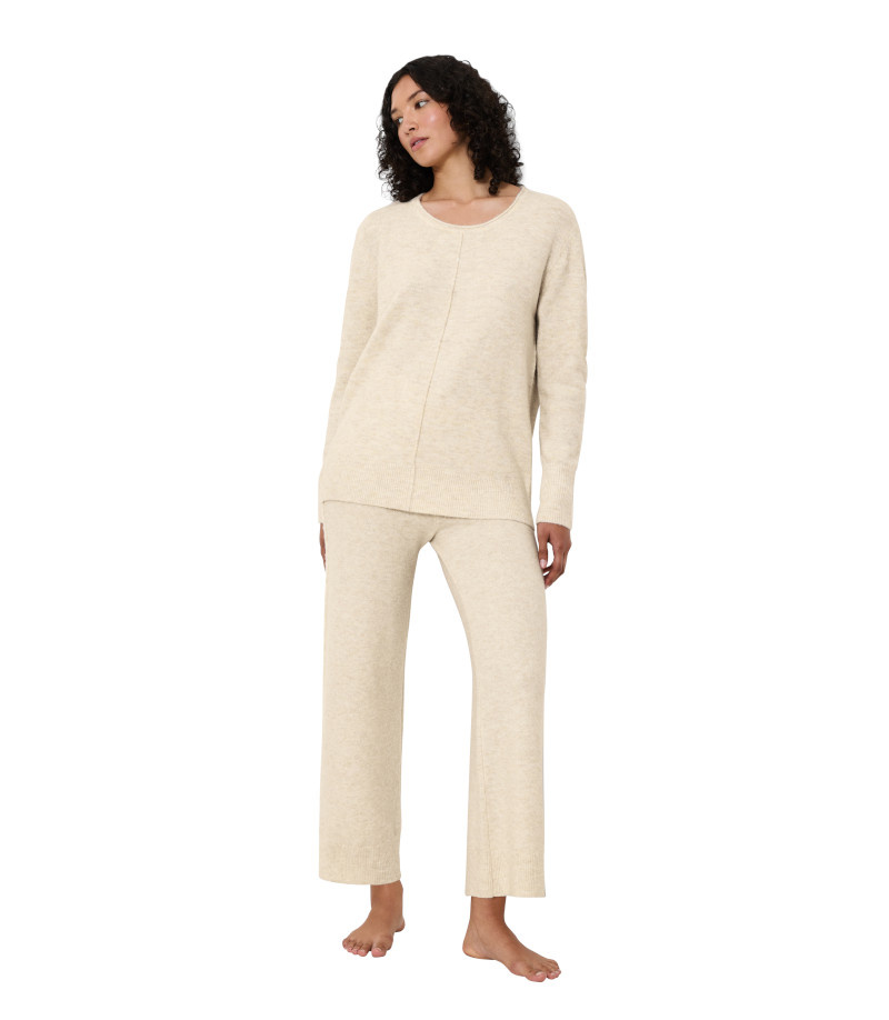 Odzież domowa ze szczyptą miłości. Zaprojektowaliśmy ten przyjemny sweter z domieszką wełny z myślą o Twojej wygodzie i swobodzie. Cozy Comfort Top to uniwersalny, wygodny sweter z długimi rękawami. Jest wykonana z naturalnie ciepłych tkanin m.i wełny. Stylowy luźny krój z okrągłym dekoltem będzie doskonale komponował się z Twoją codzienną stylizacją.