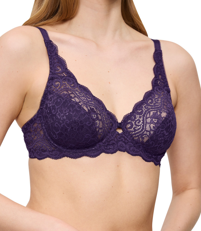 - Koronkowo zdobione miseczki zapewniają perfekcyjne dopasowanie i świetnie podtrzymują biust.