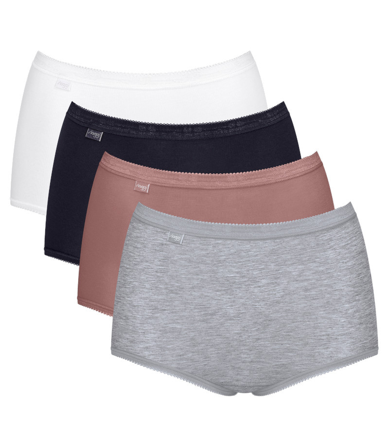 Sloggi Basic+ Maxi 4P to majtki wykonane z najwyższej jakości, miękkiej i przyjemnej w dotyku bawełny. Idealne dla osób o bardzo wrażliwej skórze, które mają problem ze znalezieniem bielizny niepodrażniającej i nieuwierającej ciała.