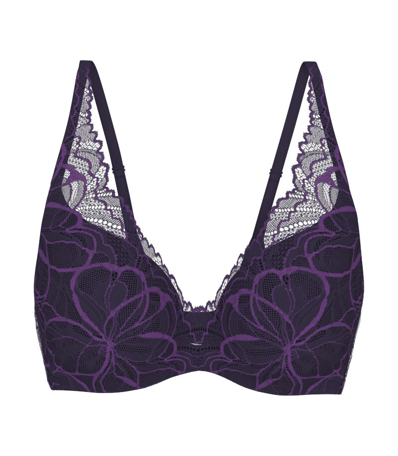 - Usztywniany biustonosz z innowacyjną fiszbiną perfekcyjnie zaokrągla biust, nadając mu naturalny wygląd.