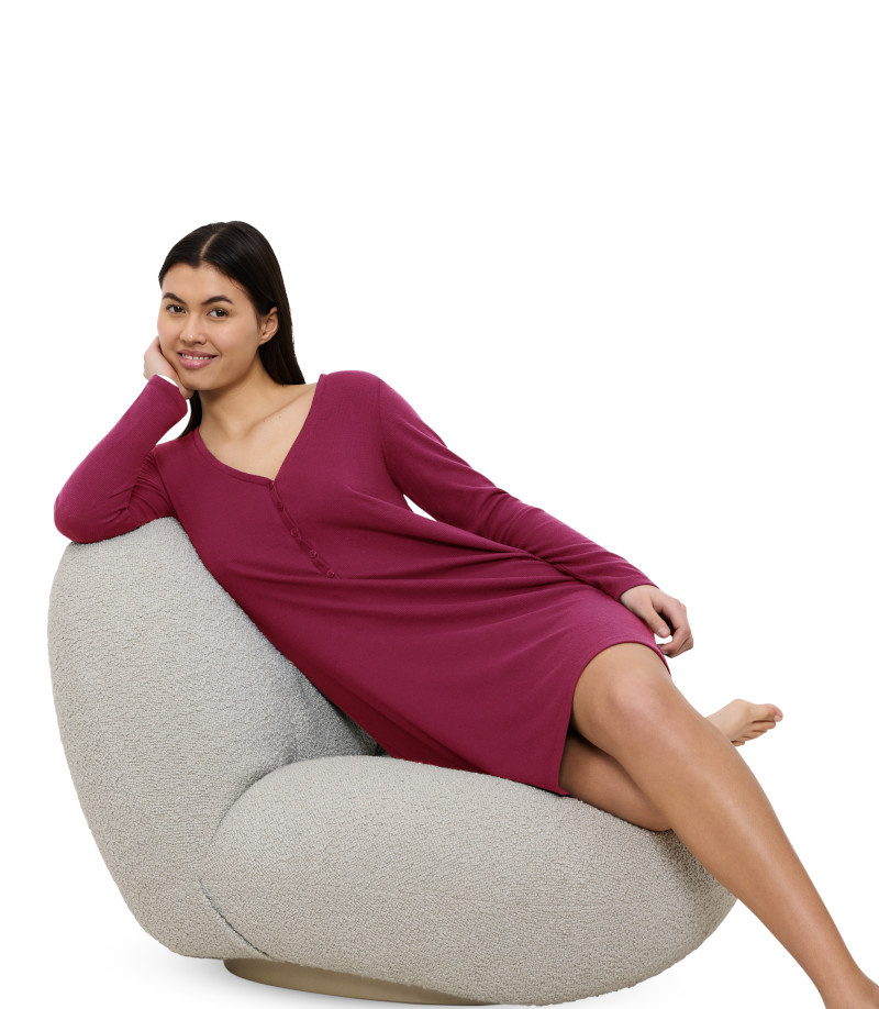 Jedna koszulka, różne zastosowania. Możesz nosić ją według uznania jako sukienkę, lub ulubioną koszulkę nocną. Wygodny krój i przyjemna w dotyku prążkowana wiskoza zadbają o Twój komfort. Wysokiej jakości naturalna tkanina znajomicie odprowadza wilgoć, dzięki czemu zapewni Ci komfort przez cały rok nawet podczas gorących letnich nocy.