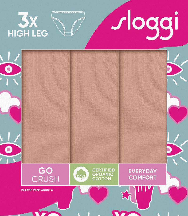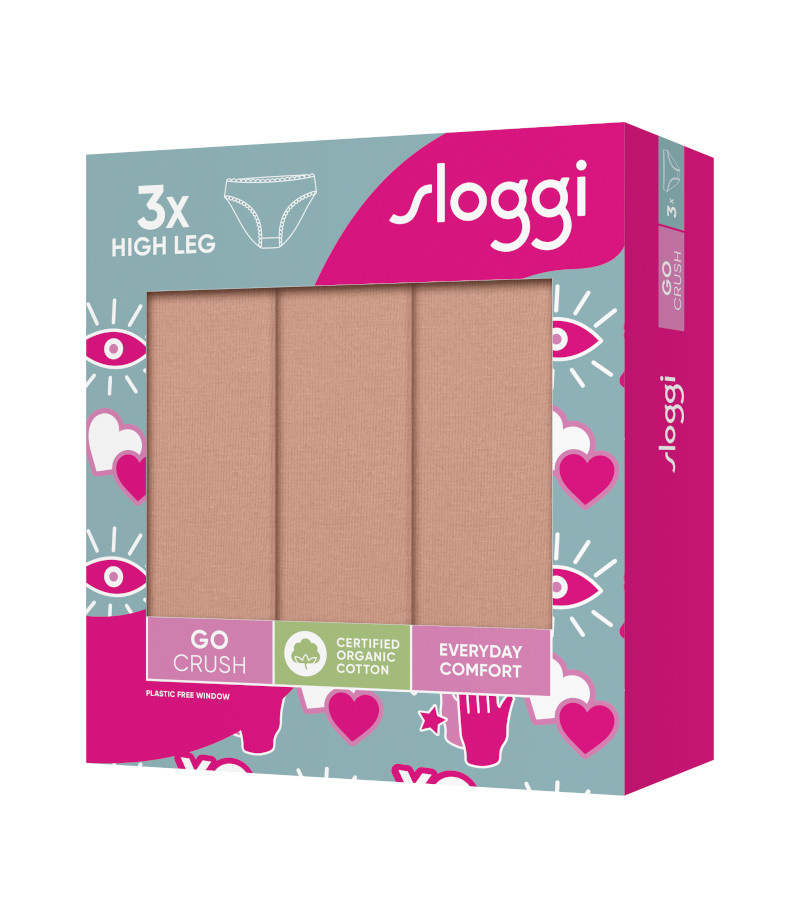 Ten zestaw 3 par z GO CRUSH by sloggi sprawi, że każdy dzień będzie wyjątkowy! Te wyższe majtki typu high leg są superwygodne, supermiękkie i supersłodkie, a do tego cudownie dopasowują się do Twojej skóry.