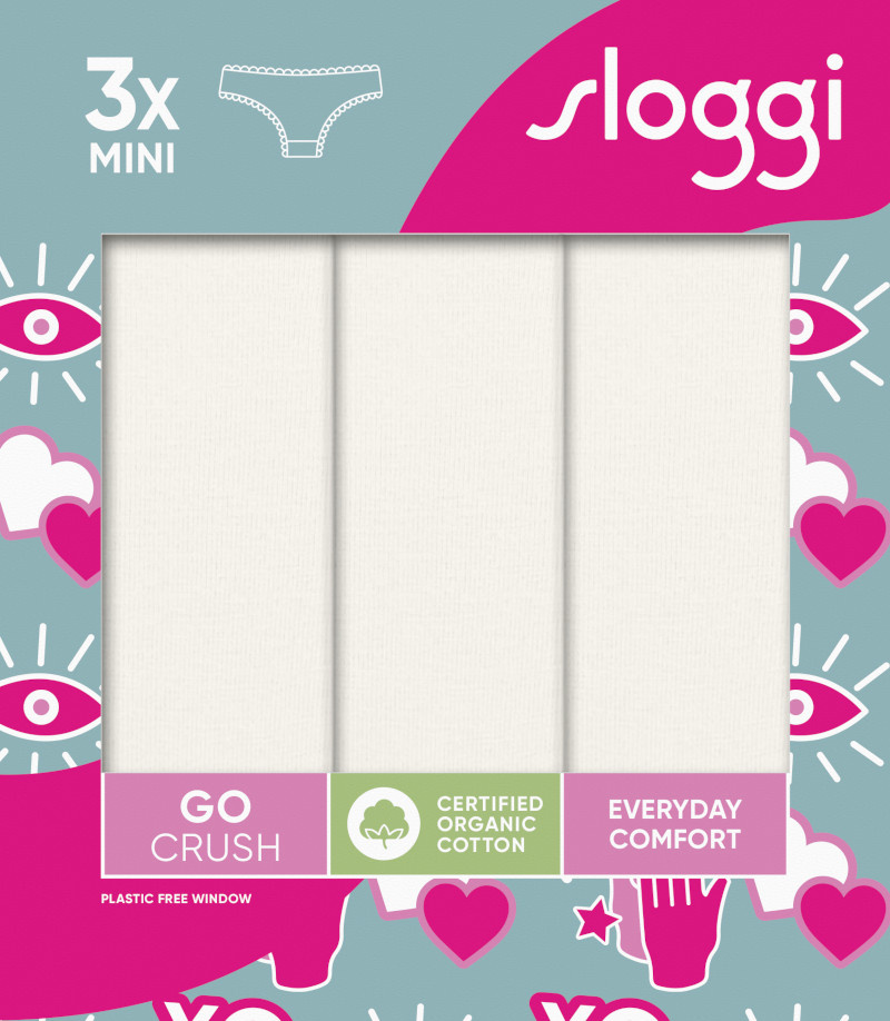 Ten zestaw 3 par z GO CRUSH by sloggi sprawi, że każdy dzień będzie wyjątkowy! Te majtki typu mini są superwygodne, supermiękkie i supersłodkie, a do tego cudownie dopasowują się do Twojej skóry.