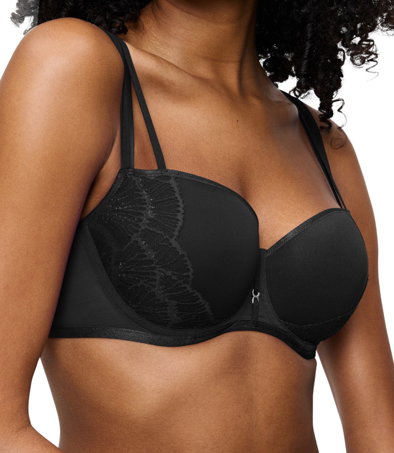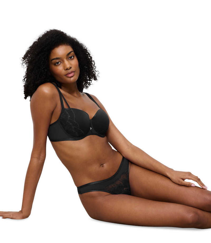 - Wysoki karczek biustonosza zapewnia bardzo dobre zebranie biustu, kreując piękny dekolt.