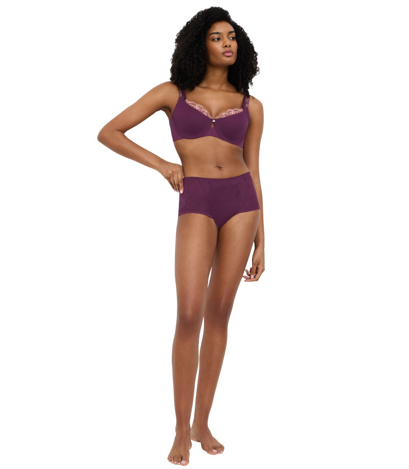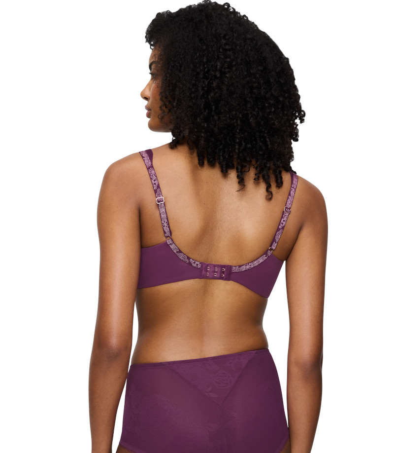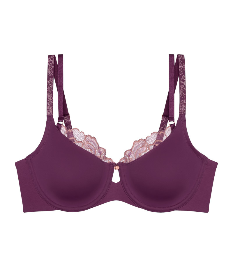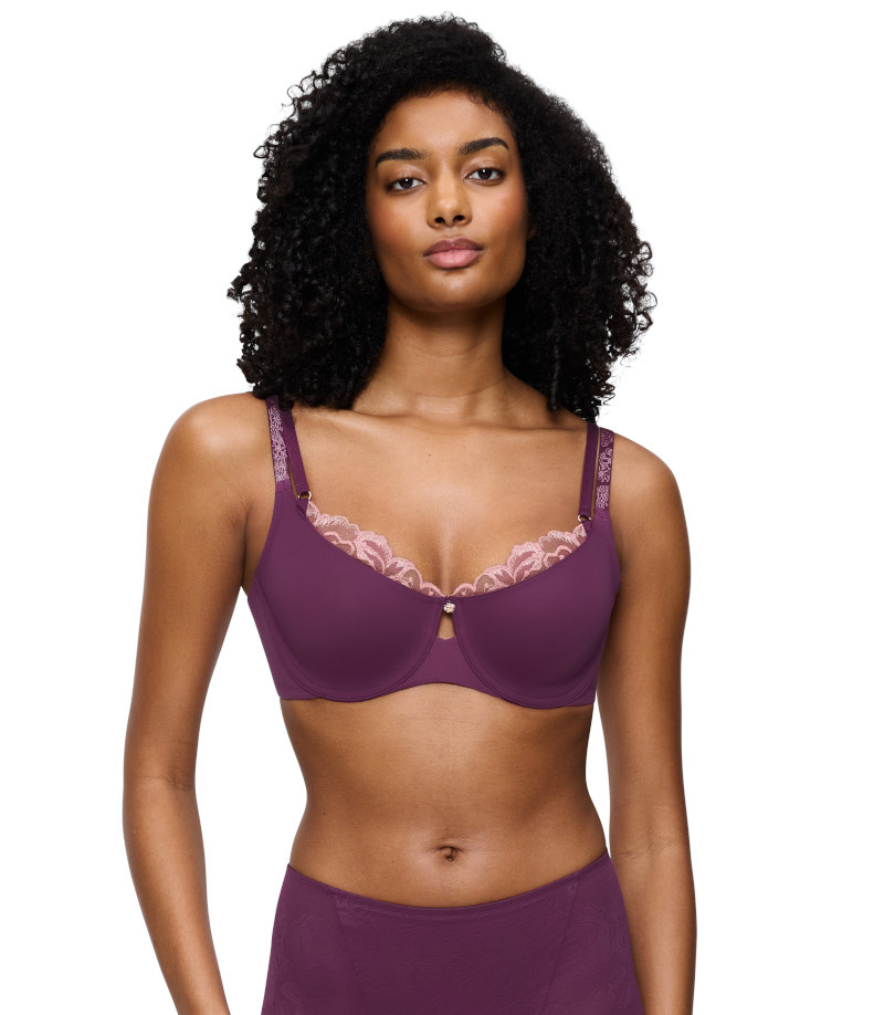 - Biustonosz z miękkimi miseczkami typu minimizer modeluje i optycznie zmniejsza biust o jeden rozmiar.