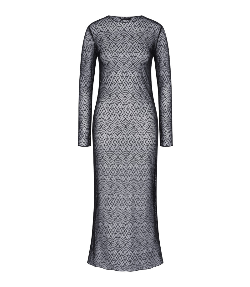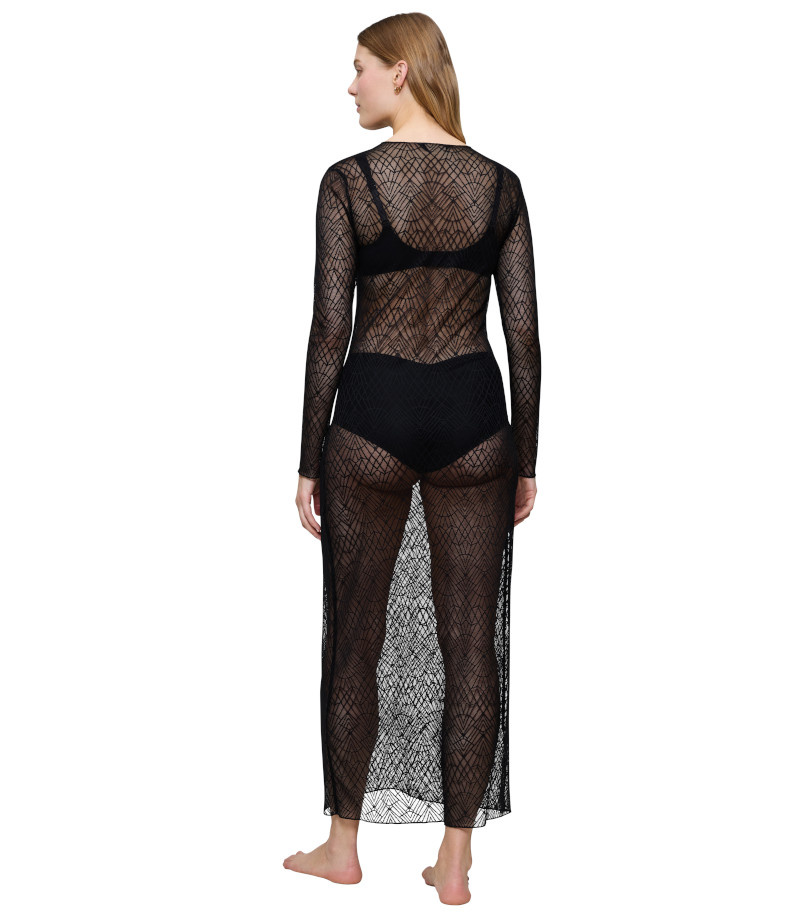 Wykonana ze zmysłowej i przezroczystej tkaniny. Ta elegancka sukienka z długimi rękawami została wykonana z misternie zdobionej koronki, która nadaje jej ponadczasowy wygląd.