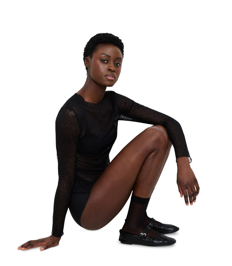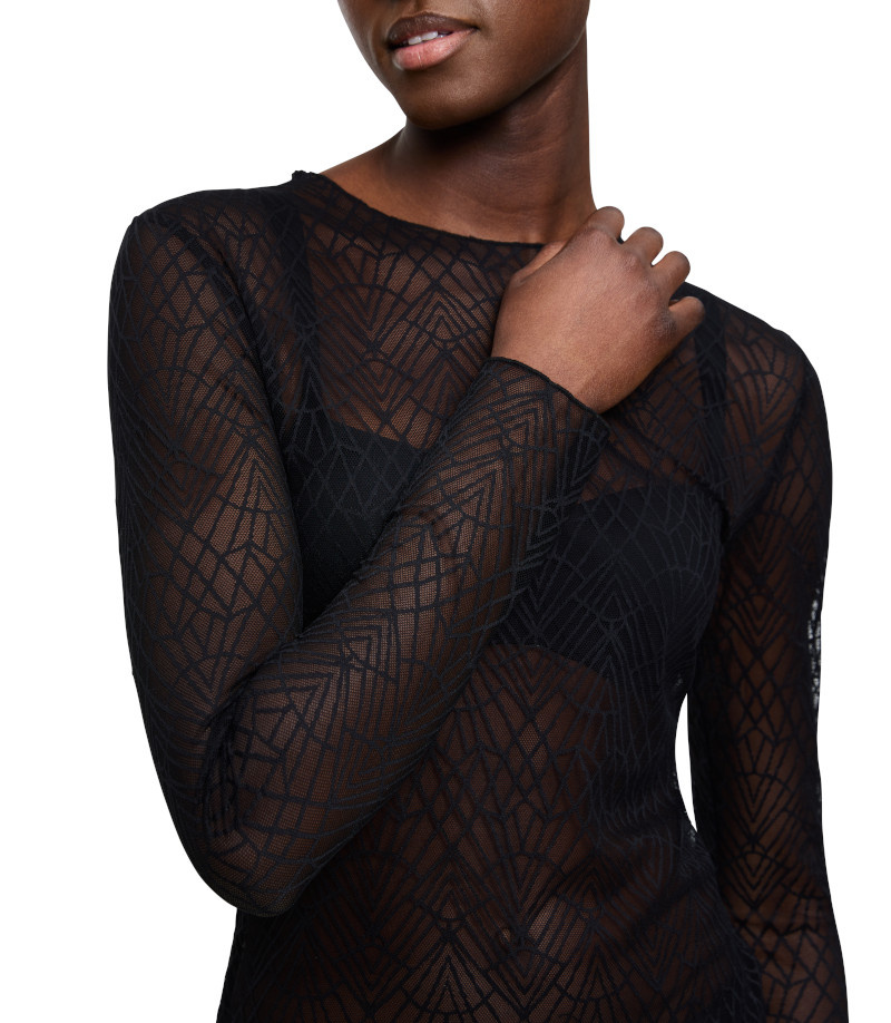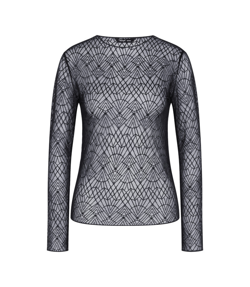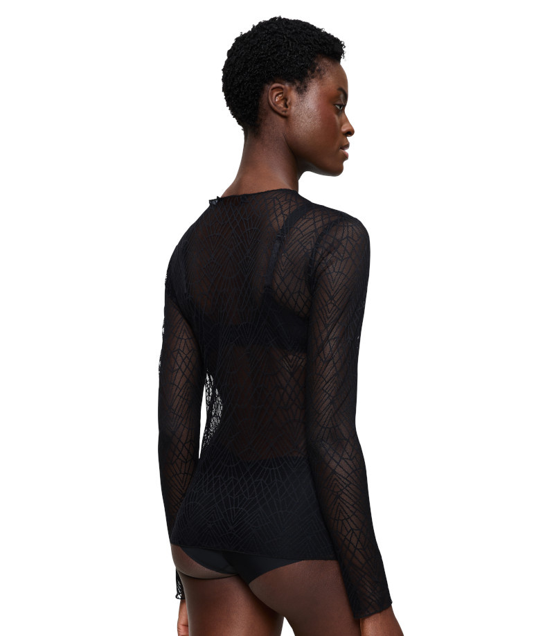 - Top z długim rękawem i okrągłym dekoltem wykonany z żakardowej koronki.