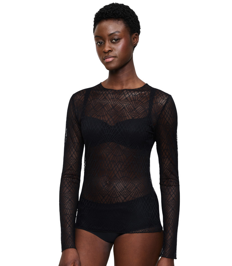 Ten elegancki top z długim rękawem został wykonany z misternie zdobionej koronki, który nada każdej stylizacji ponadczasowy wygląd. Idealny dla Pań które chcą wyglądać elegancko, a przy tym czuć się komfortowo cały dzień.