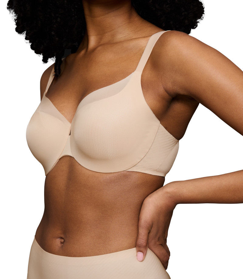 - Miękki biustonosz typu minimizer optycznie pomniejszy biust o jeden rozmiar.