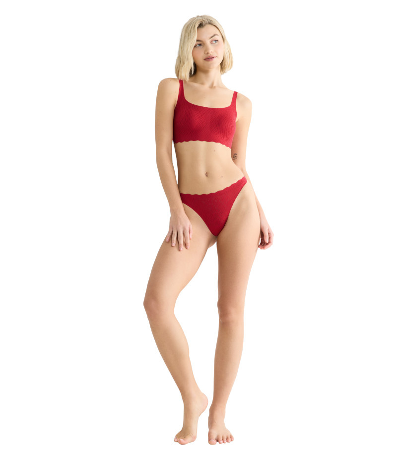 Majtki typu stringi z linii ZERO Feel Bliss łączą w sobie piękno i wygodę, zapewniając bezszwowy, niezakłócony komfort charakterystyczny dla linii ZERO Feel dzięki romantycznej koronce rozciągającej się w zakresie 360°. Swobodnie wycięte krawędzie nie odznaczają się pod obcisłymi ubraniami.