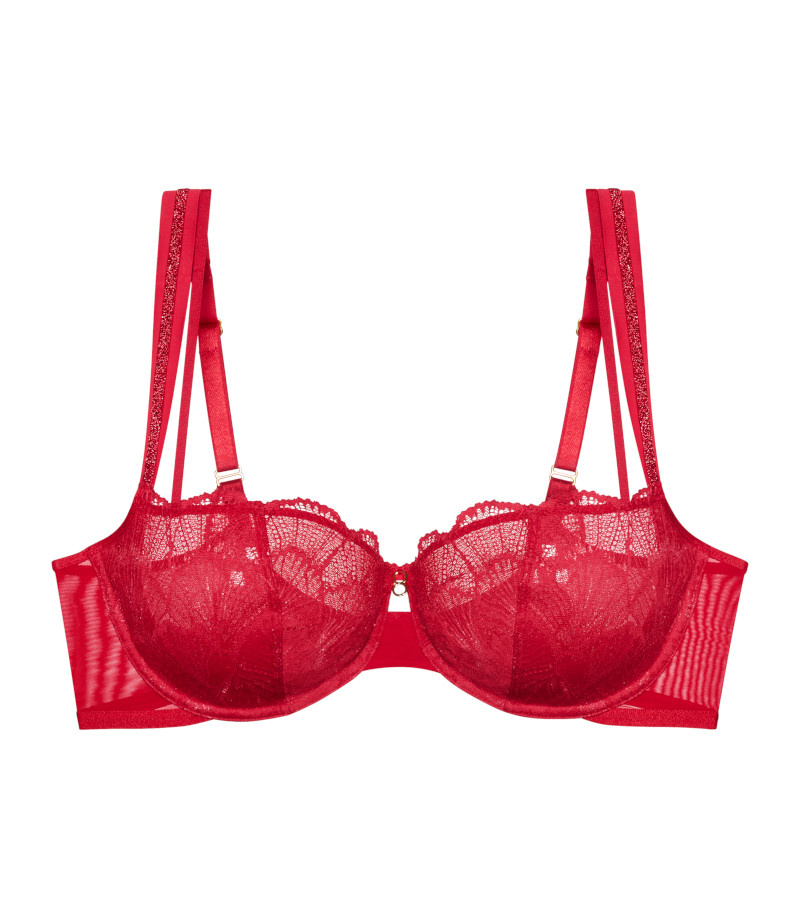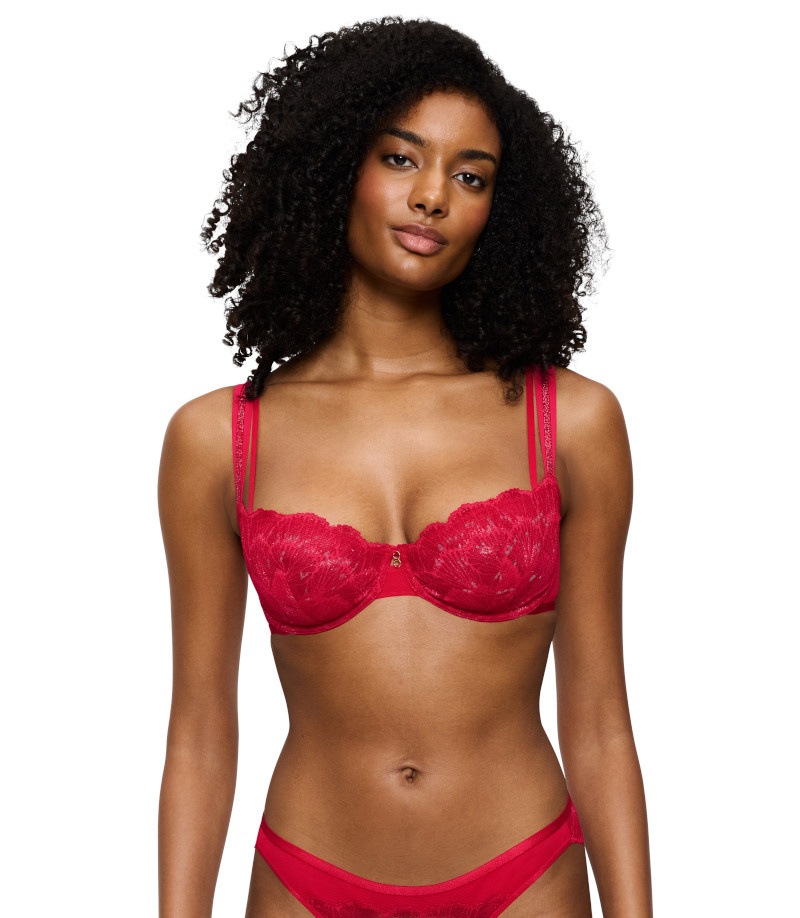 Luksusowa koronka łączy się z opalizującą nitką lureksową, dodając bieliźnie blasku. Efekt push-in i zaokrąglone wycięcie na plecach tworzą seksowny i zmysłowy wygląd.