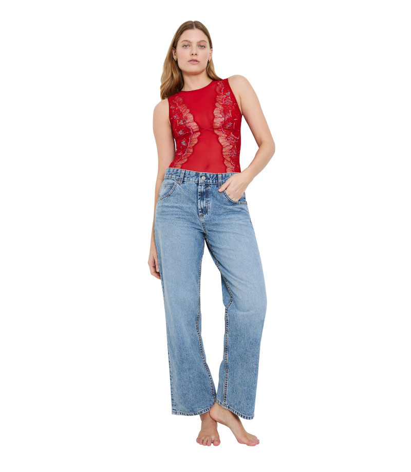 • Body uszyte z łączonych materiałów pięknej żakardowej koronki i zmysłowego tiulu.