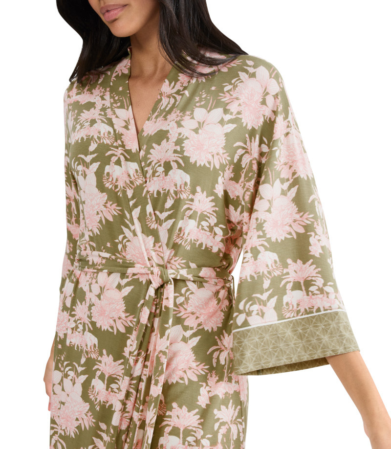Otul się przyjemnością, jaką daje ten ciepły i aksamitnie miły w dotyku szlafrok od Triumph. Miękka satyna z orientalnym kwiatowym nadrukiem nadaje niezwykle eleganckiego charakteru, zapewniając jednocześnie maksimum komfortu podczas domowego relaksu.
