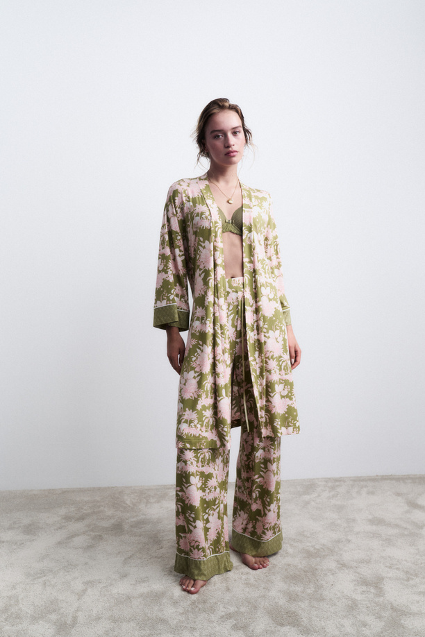 - Klasyczny krój wiązany w pasie nie ogranicza ruchów i zapewnia pełną swobodę. Uniwersalny fason z długimi rękawami sprawdzi się przez cały rok. Doskonały dla Pań, które także w zaciszu domowym chcą czuć się i wyglądać elegancko.