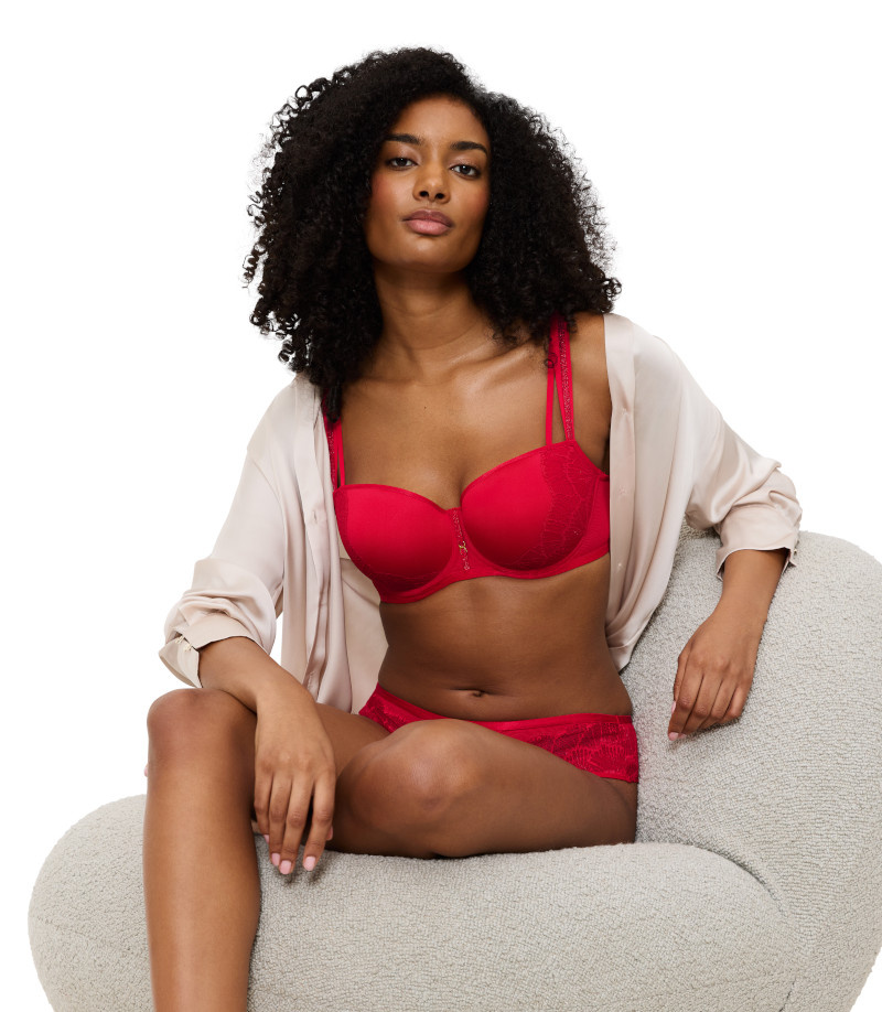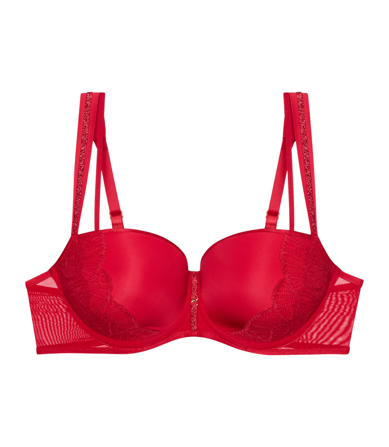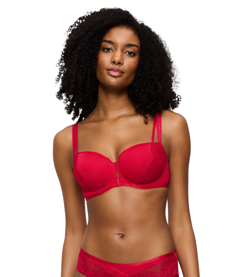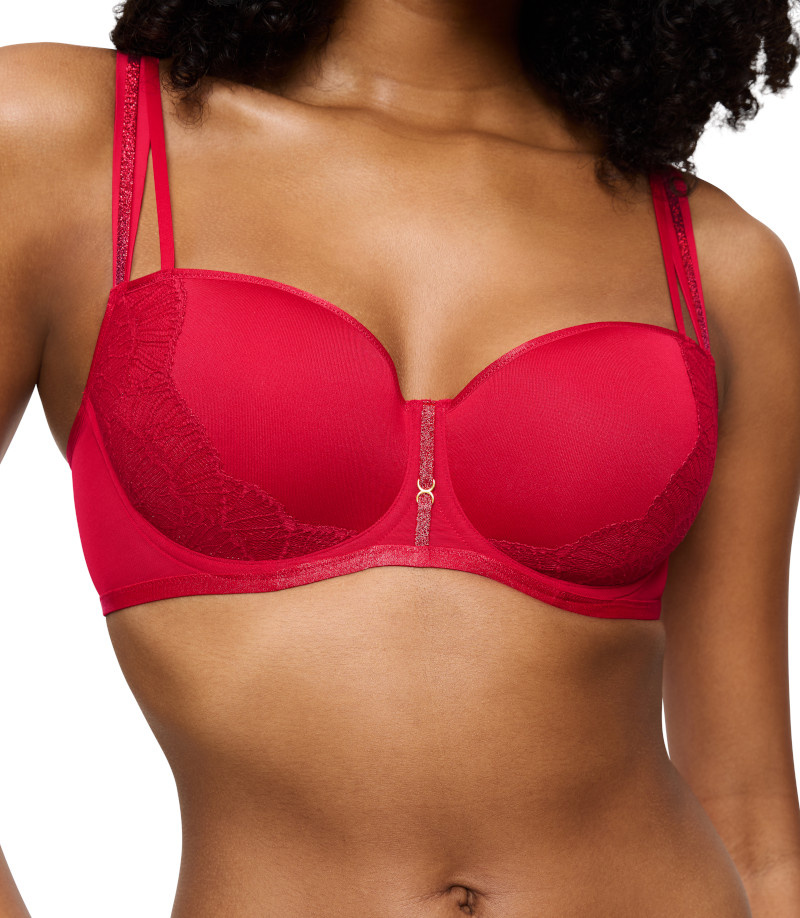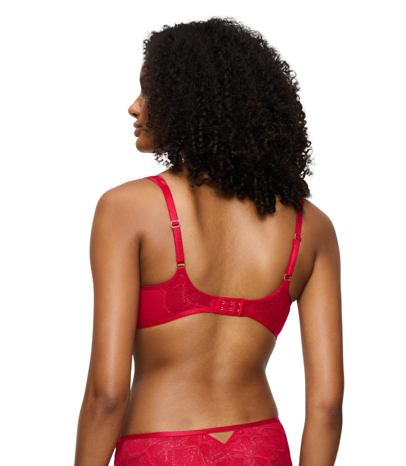 - Wysoki karczek biustonosza zapewnia bardzo dobre zebranie biustu, kreując piękny dekolt.