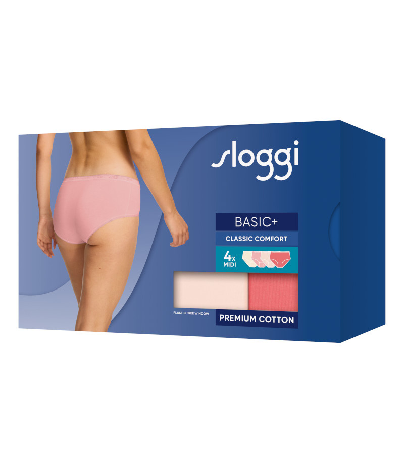 - Sloggi Basic+ Midi 4P to majtki wykonane z najwyższej jakości, miękkiej i przyjemnej w dotyku bawełny. Dostępne w praktycznym czteropaku.