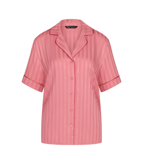 - Żakardowa koszulka damska rozpinana z krótkim rękawem.
