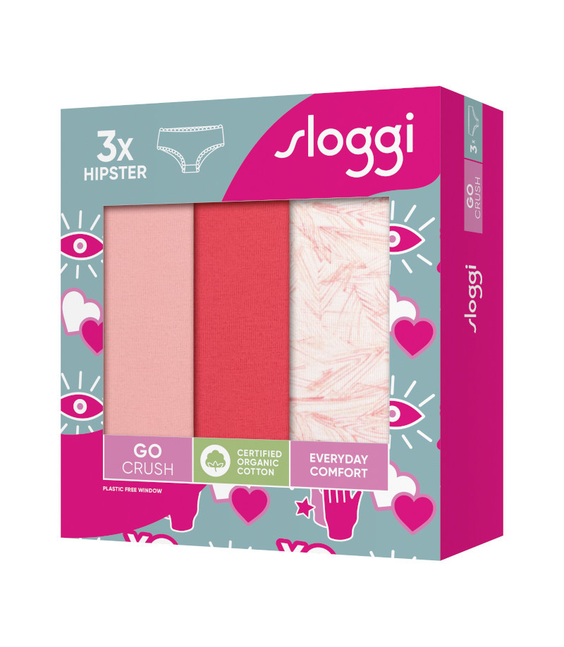 Ten zestaw 3 par majtek z GO CRUSH by sloggi sprawi, że każdy dzień będzie wyjątkowy! Te zabudowane majtki typu hipster są superwygodne, supermiękkie i supersłodkie, a do tego cudownie dopasowują się do Twojej skóry.